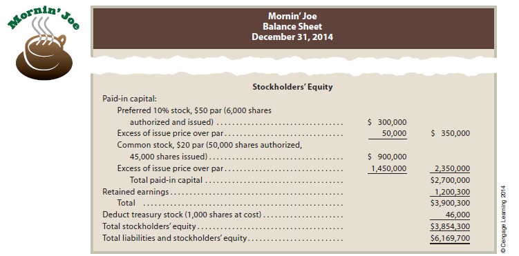 The Stockholders’ Equity section of Mornin’ Joe’s balance sheet as of December 31, 2014, is shown below.