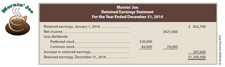 Mornin’ Joe’s retained earnings statement for the year ended December 31, 2014, is as follows: