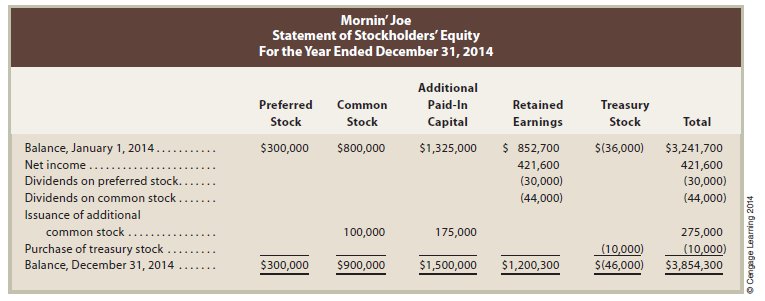 The statement of stockholders’ equity for Mornin’ Joe is shown below.