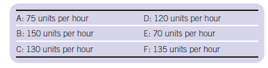 In the case of product 4 in Figure 21.9’s JIT/Lean factory, it was determined that the product required more capability in process A and process E than was available from single workstations, so they were doubled. Suppose that a product flow of 120 units per hour is anticipated. Each process has the following estimated capability for this product: