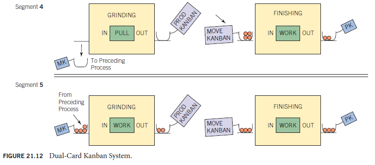 Ohno’s double card system uses two types of kanbans: the withdrawal kanban and the production kanban.