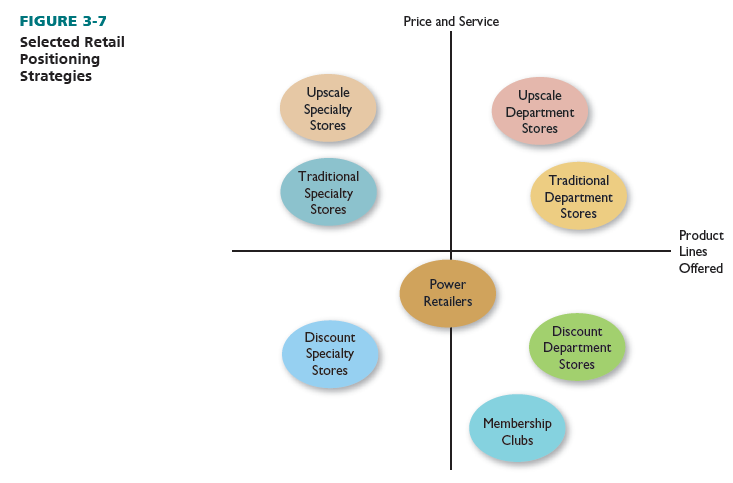 Through positioning, a retailer devises its strategy in a way that projects an image relative to its retail category and its competitors and that elicits a positive consumer response. A firm selling women’s apparel, for example, could generally position itself as an upscale or mid-priced specialty retailer, a traditional department store, a discount department store, or a discount specialty retailer, and it could specifically position itself with regard to other retailers carrying women’s apparel.