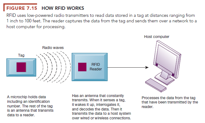 The reader captures these data, decodes them, and sends them back over a wired or wireless network to a host computer for further processing (see Figure 7.15). Both RFID tags and antennas come in a variety of shapes and sizes.