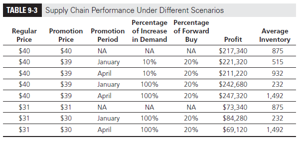- As seen in Table 9-3, average inventory increases if a promotion is run during the peak period and decreases if the promotion is run during the off-peak period.