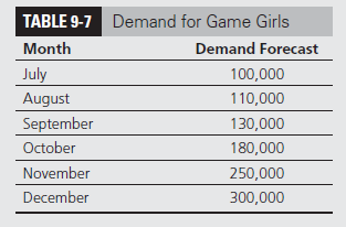 Sandra, concerned about controlling costs during the periods of surging demand over the holidays, proposes to Bill that the price be lowered by $5 for the month of September. This would likely increase September’s demand by 50 percent due to new customers being attracted to Game Girl. In addition, 30 percent of each of the following two months of demand would occur in September as forward buys. She believes strongly that this leveling of demand will help the company.