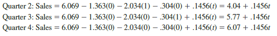 Similarly, if time period t corresponds to quarters 2, 3, and 4, the estimates of quarterly sales are