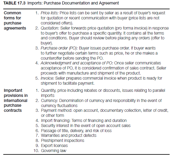 Selection of the supplier should also be based on the integrity of the product. Integrity of the product includes the assumption that the import does not violate any intellectual property rights registered in the country, such as patent, trademark, design, or copyright, and that it meets certain regulatory requirements, such as product compliance with the various import laws relating to marking, labeling, inspections, and safety. There has been a rise in the production and sale of counterfeit and pirated goods in many parts of the world. Industry experts, for example, estimate lost sales from unauthorized use of U.S. intellectual property rights at $60 billion annually. It is also important to select suppliers that meet certain product safety standards. For example, food service ceramics must be tested for lead, and toys must meet labeling and safety standards. A potential importer should be aware of any foreign laws that might affect purchase, such as export restrictions or quotas. The importer also needs to ascertain whether the supplier has already appointed other distributors or sales agents in the territory and whether the distribution channels available are acceptable in terms of overall profitability and risk. For example, an agent is likely to realize limited profits if the supplier has a distributor in the market (see International Perspective 17.3 for a typical import transaction).