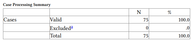 Note that the Alpha is .80, an acceptable internal consistency reliability. The Item Statistics table shows that you have 73 students with data on all four items as well as reasonable means and SDs. The Summary Item Statistic table shows that the mean of the four items is 3.30; the mean correlation among the items is .49 and varies from a low of .33 to a high of .74. All the Corrected Item-Total Correlations are above .40, which is good.