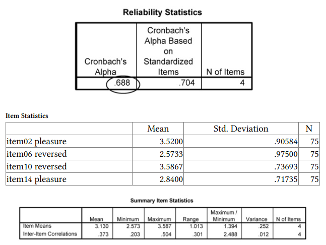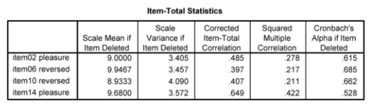- For the pleasure scale, use item02, item06 reversed, item10 reversed, and item14.