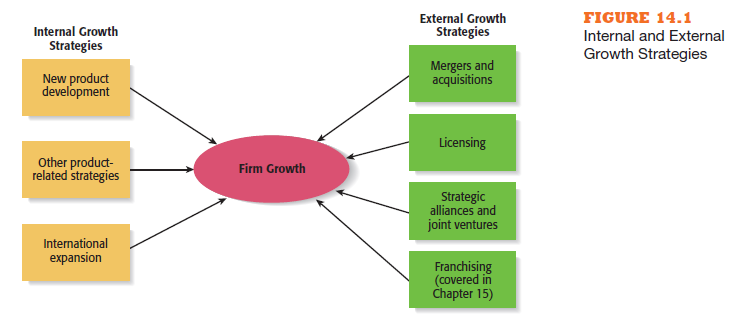 The growth strategies are divided into internal strategies for growth and exter- nal strategies for growth, as shown in Figure 14.1.