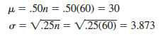 Using equations (18.1) and (18.2) with n = 60 homes and p = .50, the sampling distribution of the number of plus signs can be approximated by a normal distribution with