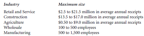 The Small Business Administration (SBA) also provides a few programs for U.S. exporters. The SBA Act defines an eligible small business as one that is independently owned and operated and not dominant in its field of operation. To qualify for the programs, applicants must meet the definition of a small business under SBA’s size standards and other eligibility requirements. The following represent general guidelines to determine a small business (Eximbank, 2012b):