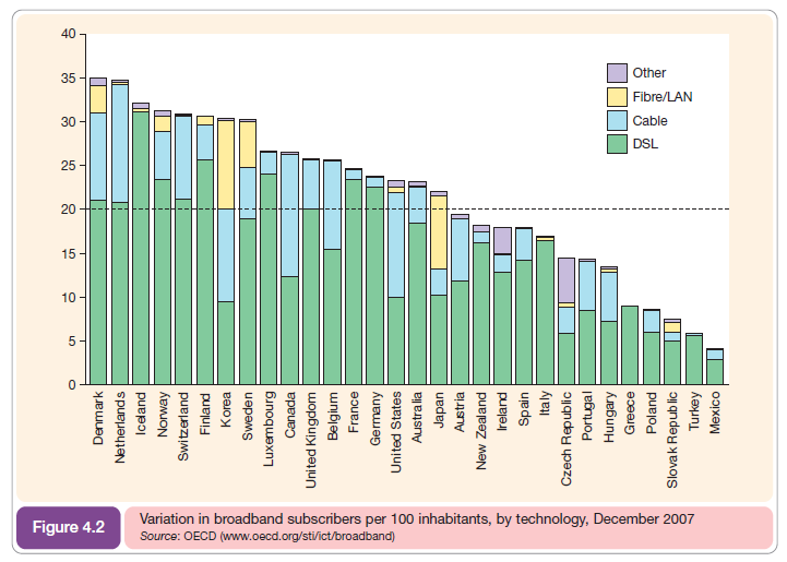 Competition in the marketplace amongst broadband providers has caused a great increase in the broadband Internet access options available for consumers and small businesses. But it should be borne in mind that these vary significantly by country as shown by Figure 4.2. They show the web services should be tested for lower-speed Internet access.