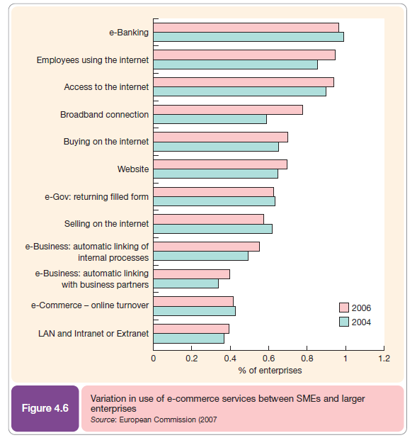 Variations in usage of mobile services are shown in Table 4.3. You can see that this type of data is vital for managers considering investment in mobile e-commerce services. Again there are large variations in usage of services in different countries, but with overall use of mobile applications relatively low.