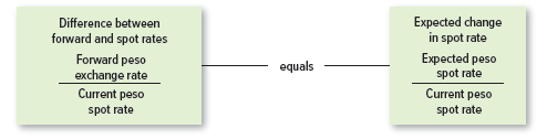 Thus, some companies find it safer to sell the peso forward, while others find it safer to buy the peso forward. When the first group predominates, the forward price of pesos is likely to be less than the expected spot price. When the second group predominates, the forward price is likely to be greater than the expected spot price. On average you would expect the forward price to underestimate the expected spot price just about as often as it overestimates it.