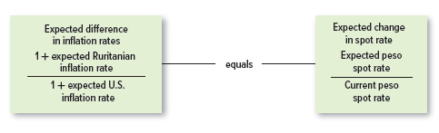 Current spot rate x expected difference in inflation rates = expected spot rate