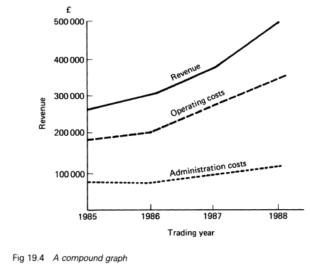 Figure 19.1 shows a tabulation of revenue and costs relating to a trading operation. As it stands many people might find this statement difficult to interpret. Presentation graphically adds to easy understanding.