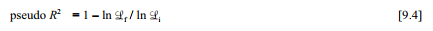 where ln Li ; is the initial or iteration 0 (model with constant only) log likelihood, and ln Lr is the final iteration’s log likelihood. Here,