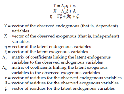 r = the matrix of causal relationships between the latent exogenous and the endogenous variables