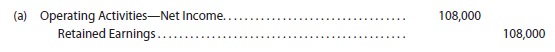 The $108,000 is reported on the statement of cash flows as part of “cash flows from operating activities.” Thus, an entry is made in the Transactions columns on the spreadsheet, as follows: