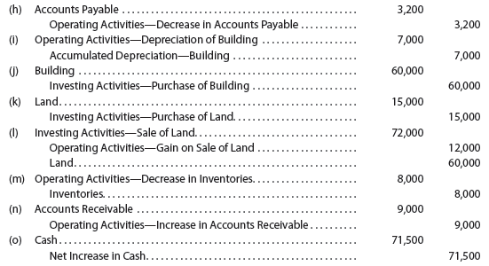 The entries for the other noncash accounts are made in the spreadsheet in a manner similar to entries (a) and (b). A summary of these entries is as follows: