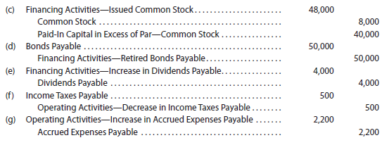 The entries for the other noncash accounts are made in the spreadsheet in a manner similar to entries (a) and (b). A summary of these entries is as follows: