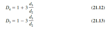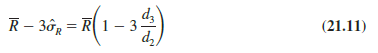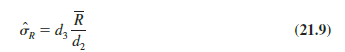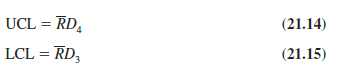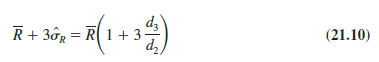 where d2 and d3 are constants that depend on the sample size; values of d2 and d3 are provided in Table 21.3. Thus, the UCL for the R chart is given by
