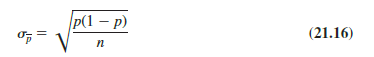 The sampling distribution of p can be used to determine the variation that can be expected in p values for a process that is in control. Recall that the expected value or mean of p is p, the proportion defective when the process is in control. With samples of size n, the formula for the standard deviation of p, called the standard error of the proportion, is