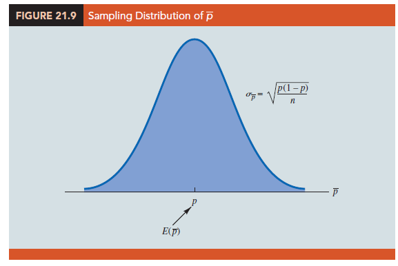 In summary, whenever the sample size is large, the sampling distribution of p can be approximated by a normal distribution with mean p and standard deviation s-. This distribution is shown in Figure 21.9.