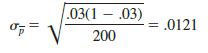 With p = .03 and samples of size n = 200, equation (21.16) shows that the standard error is