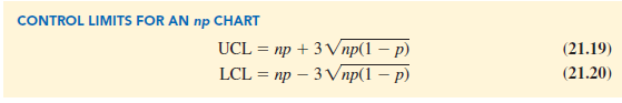 The information provided by an np chart is equivalent to the information provided by the p chart; the only difference is that the np chart is a plot of the number of defective items observed, whereas the p chart is a plot of the proportion of defective items observed. Thus, if we were to conclude that a particular process is out of control on the basis of a p chart, the process would also be concluded to be out of control on the basis of an np chart.