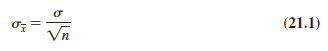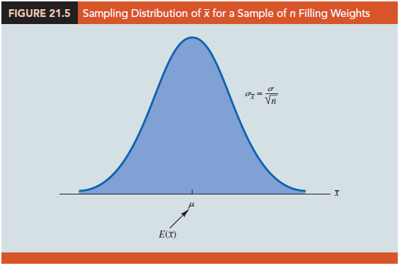In addition, because the filling weights are normally distributed, the sampling distribution of X is normally distributed for any sample size. Thus, the sampling distribution of X is a normal distribution with mean m and standard deviation σX. This distribution is shown in Figure 21.5.