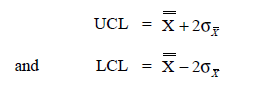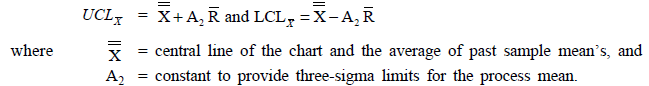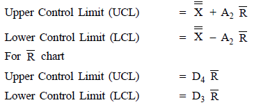 X-Chart and R-Chart: The formulas used to establish various control limits are as follows: