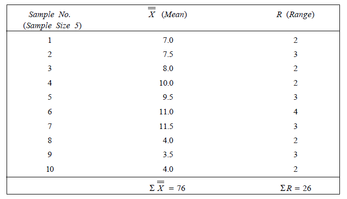 ILLUSTRATION 2 (Problem on X and R Chart): The results of inspection of 10 samples with its average and range are tabulated in the following table. Compute the control limit for the X and R-chart and draw the control chart for the data.