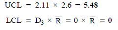 A2 = 0.58, D3 = 0 and D4 = 2.11