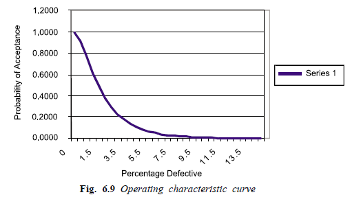 The concepts of the two types of risk are well explained using an operating characteristic curve. This curve will provide a basis for selecting alternate sample plans. For a given value of sample size (n), acceptance number (C), the O.C. curve is shown in Fig. 6.8.