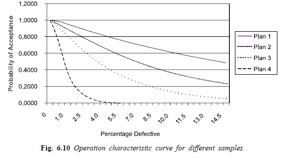 In this process, one will commit two types of errors, viz, type-I error and type-II error. If the lot is really good, but based on the sample information, it is rejected, then the supplier/ producer will be penalized. This is called producer’s risk or type-I error. The notation for this error is a. On the other hand, if the lot is really bad, but it is accepted based on the sample information, then the customer will be at loss. This is called consumer’s risk or type-II error. The notation for this error is p. So, both parties should jointly decide about the levels of producer’s risk (a) and consumer’s risk (P) based on mutual agreement.