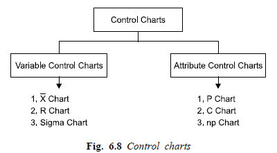 - Variable control charts: It is one by which it is possible to measures the quality characteristics of a product. The variable control charts are X-BAR chart, R-BAR chart, SIGMA