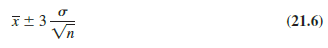 The American Society for Testing and Materials Manual on Presentation of Data and Control Chart Analysis provides values for d2 as shown in Table 21.3. For instance, when n = 5, d2 = 2.326, and the estimate of s is the average range divided by 2.326. If we substitute R/d2 for s in expression (21.6), we can write the control limits for the x chart as