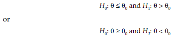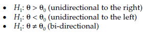 Sometimes, the null hypothesis can also be expressed as an inequation. This gives the following hypotheses systems: