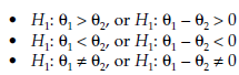 In these cases, the symbols ‘<‘ (less than or equal to) and ‘>’ (greater than or equal to) are used in formulating the null hypothesis H0 in order to cover all cases in which the alternative hypothesis HP is not valid.