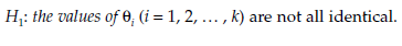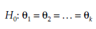 A statistical test on k populations aims to determine if these populations differ on a specific parameter. θ1 θ2, … , θk are the k parameters describing the k populations being compared. The null hypothesis would be that the k parameters are identical: