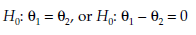When a statistical test focuses on the parameters of two populations, the goal is to find out whether the two populations described by a specific parameter are different. If θ1 and θ2 represent the parameters of the two populations, the null hypothesis predicts the equality of these two parameters: