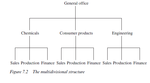 For enterprises with a limited scope, this system had (and has) definite advantages. Problems were encountered only when the firm began to undertake an increasing variety of activities and operate in many different geographical locations. The production and marketing problems arising in the field of one product may have very little connection with the production and marketing problems arising in another. In consequence, functional managers begin to become overloaded, attempting to make sense of flows of information which do not have many links between them. A firm manufacturing products such as shampoo, hair dyes and ethical drugs may find, for example, that the sales effort needs to be ‘divisionalised’. Ethical drugs may be marketed by visits to doctors and hospitals by a specialised staff of trained representatives. Shampoo requires large-scale advertising and may be sold through thousands of retail outlets. The same management team will find it difficult to cope with the problems of both sectors simultaneously.