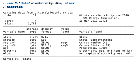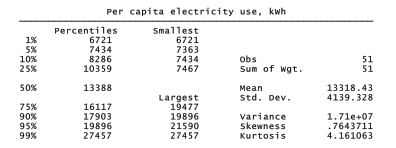 Dataset electricity.dta contains information on electricity consumption in U.S. states, from the California Energy Commission (2012).