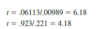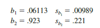 Let us conduct the t test for the Butler Trucking regression problem. Refer to the section of Figure 15.6 that shows the output for the t-ratio calculations. Values of b1, b2, sb, and sb2 are as follows.