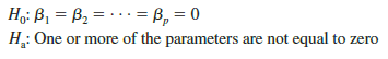 If H0 is rejected, the test gives us sufficient statistical evidence to conclude that one or more of the parameters are not equal to zero and that the overall relationship between y and the set of independent variables x1, x2, . . . , xp is significant. However, if H0 cannot be rejected, we do not have sufficient evidence to conclude that a significant relationship is present.