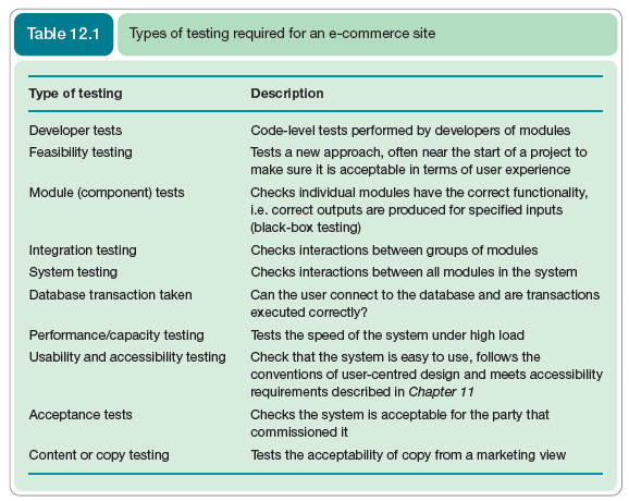 Testing occurs in different environments during the project. Prototypes are tested in a development environment which involves programmers’ testing data across a network on a shared server. In the implementation phase a special test environment may be set up which simulates the final operating environment for the system. This test environment will be used for early user training and testing and for system testing. Finally, the production or live environment is that in which the system will be used operationally. This will be used for user acceptance testing and when the system becomes live.