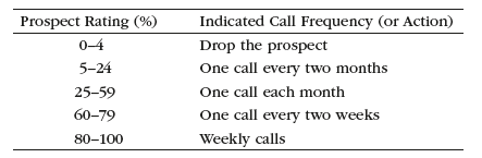 Although chart percentages were used mainly to answer the questions of route salespersons who had turned in the names of prospects, they also served as a general guide for the determination of the frequency of calls by sales representatives. Sales representatives made their second calls on prospects approximately thirty clays after the first contacts. Thereafter, the following schedule was used: