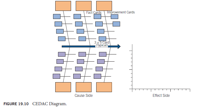 CEDAC is an acronym for cause-and-effect diagram with the addition of cards.21 It was originally developed by Dr. Ryuji Fukuda of Sumitomo Electric, a Japanese manufacturing firm. Its purpose is to facilitate continual improvement in the workplace.